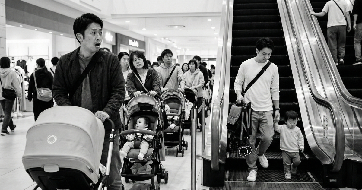 「エレベーター、また満員か……」 俺たちは、エレベーターホールの長蛇の列に並んでいた。 ベビーカーを押している以上、エスカレーターは使えない。 何台見送っただろうか。 前にも後ろにも、巨大なベビーカーを押したパパたちが、死んだ魚のような目をして並んでいる。 子供はぐずり始め、妻の機嫌も悪くなる。 俺のせいじゃない。でも、俺がなんとかしなきゃいけない空気。 この「待つだけの時間」が、俺の休日を確実に蝕んでいく。